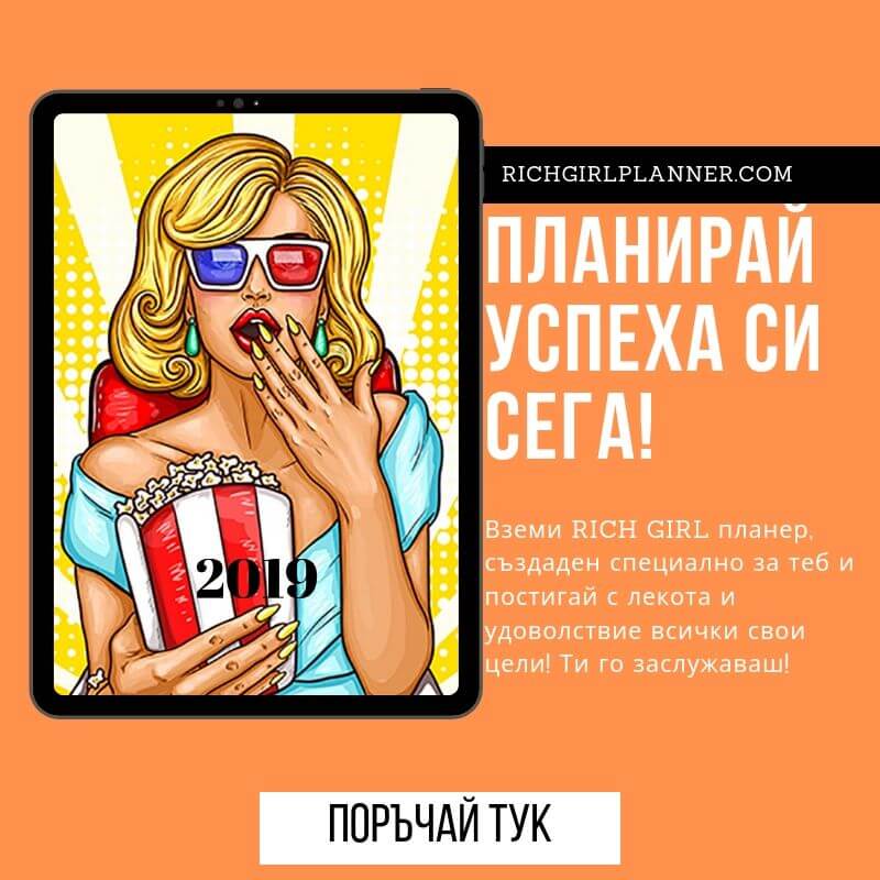 От скоро имам планера Rich girl и планирам времето си с него. Аз съм доста разсеяна творческа личност и когато напиша на хартия нагледно плановете си и задачите си, не пропускам нищо. Много хора предпочитат електронните бележки в телефона си, но аз лично не съм от тях